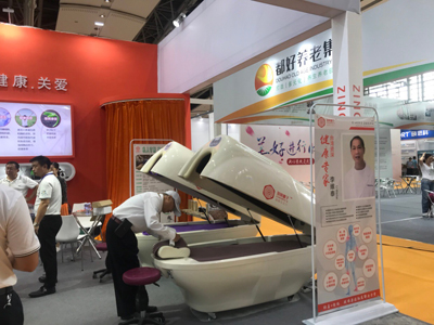 老博會(huì)展館位于A區(qū)的5.2展館。記者走訪發(fā)現(xiàn),老博會(huì)一點(diǎn)也不老,反而科技感十足?!盎ヂ?lián)網(wǎng)+社區(qū)醫(yī)療康復(fù)養(yǎng)護(hù)體系”正在成為養(yǎng)老服務(wù)的新潮流。