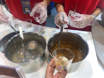 本屆廣博會(huì)展館中,餐博會(huì)展館共有5個(gè),數(shù)量最多、占地面積最大。一進(jìn)入餐博會(huì)展館所在的B區(qū),就可以聞到陣陣美食香氣迎面而來(lái)。可以說(shuō),一場(chǎng)餐博會(huì)走下來(lái),可以掌握目前國(guó)內(nèi)餐飲美食的流行趨勢(shì)。根據(jù)官方公布的數(shù)據(jù),本次餐博會(huì)展館共有1000多家餐飲品牌商參展。